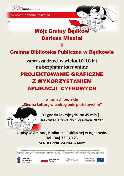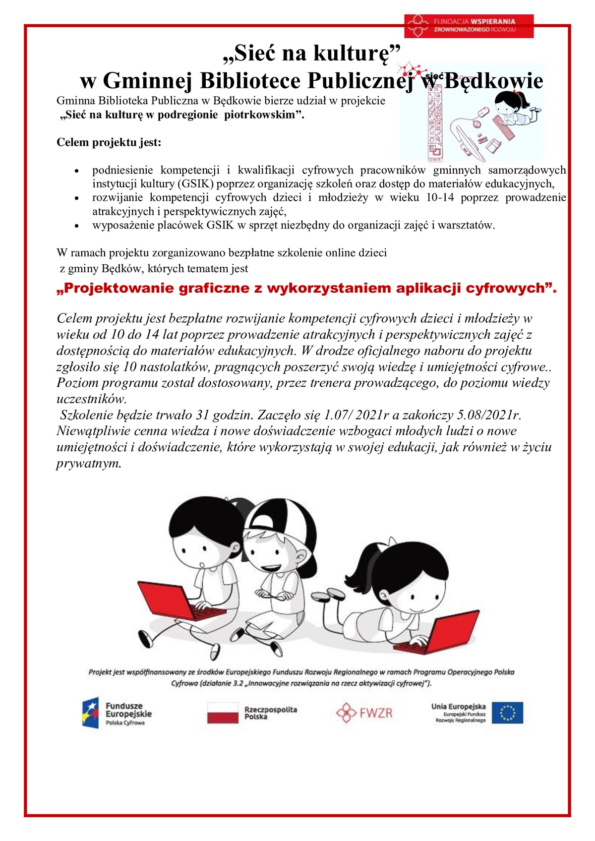 OGŁOSZENIE Gminny Ośrodek Pomocy Społecznej w Będkowie informuje, że istnieje możliwość bezpłatnego zdobycia kwalifikacji niezbędnych do świadczenia usług Asystenta osoby z niepełnosprawnością. Dostępne placówki edukacyjne: 1. Centrum Kształcenia Zawodowego i Ustawicznego Województwa Łódzkiego „MEDYK” ul. ks. Piotra Skargi 3, 97-300 Piotrków Trybunalski tel. 44 648 63 53 Kierunek: Asystent osoby niepełnosprawnej 2. Zespół Szkół Zaocznych „WIED” ul. Owocowa 12, 97-300 Piotrków Trybunalski tel. 793 049 051 Kierunek: Opiekun medyczny 3. TEB EDUKACJA – Piotrków Trybunalski ul. Polna 13/13a, 97-300 Piotrków Trybunalski tel. 571 335 719 Kierunek: Asystent osoby niepełnosprawnej Zachęcamy wszystkie osoby zainteresowane pracą w charakterze Asystenta osoby z niepełnosprawnością do kontaktu z wybraną placówką i skorzystania z możliwości zdobycia kwalifikacji.