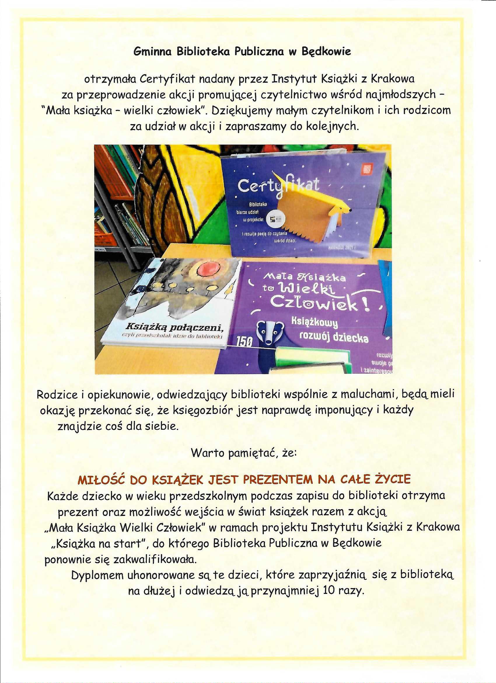 Certyfikat dla Biblioteki Publicznej