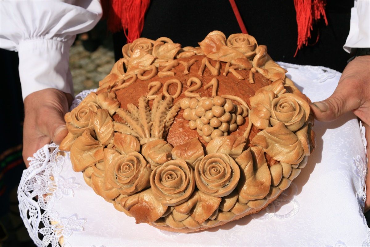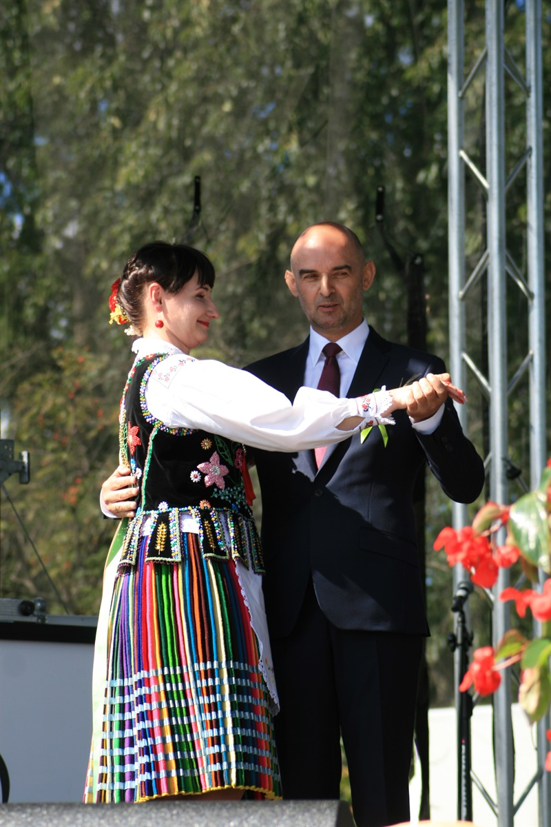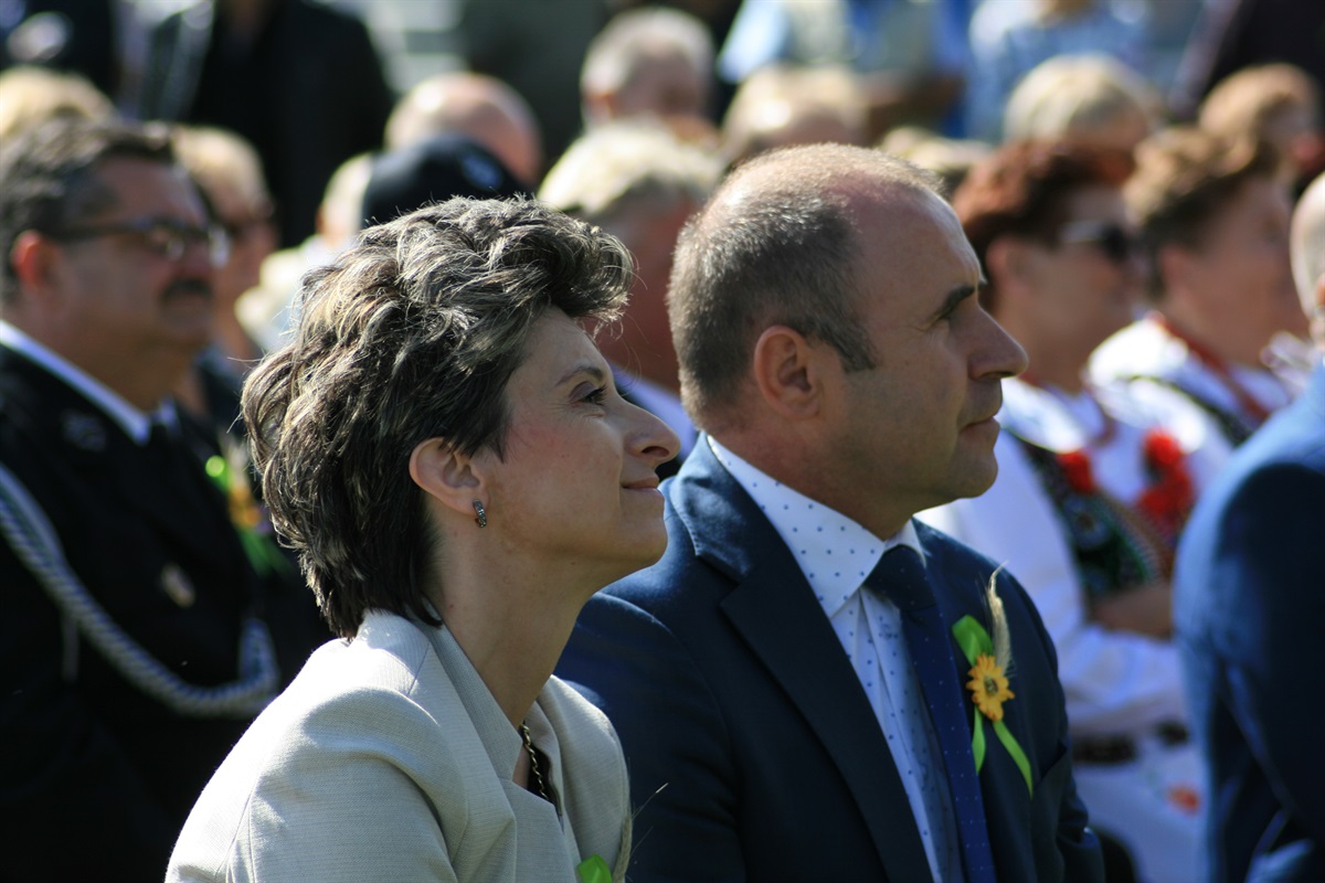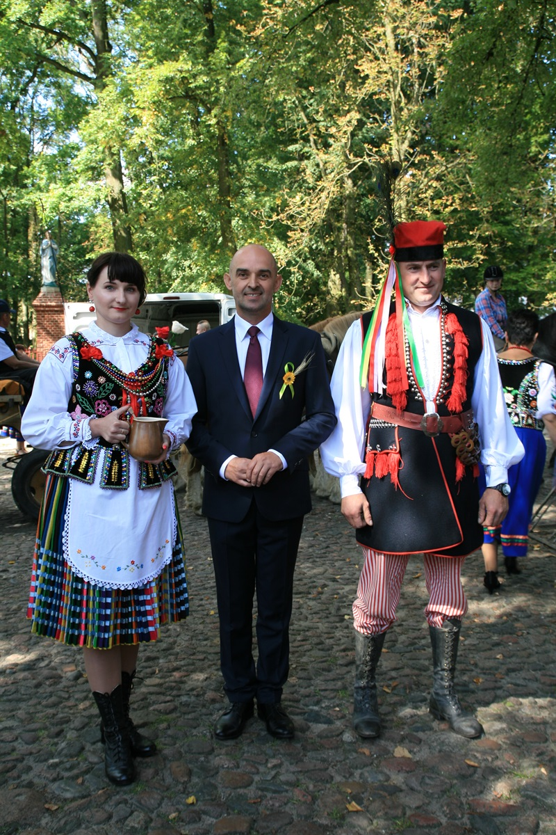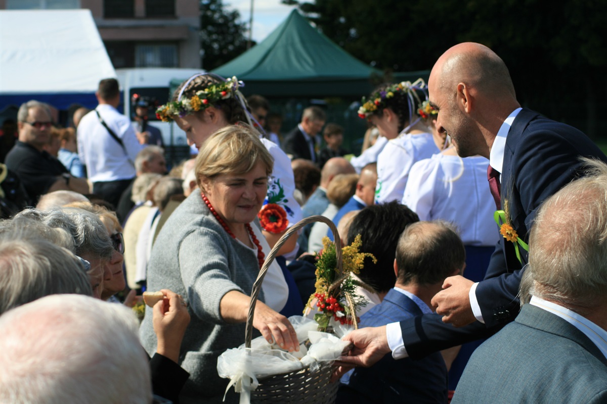 Po Mszy Świętej korowód dożynkowy udał się na boisko przy ZSP w Będkowie  gdzie odbył się ceremoniał dożynkowy - wręczenie chleba Wójtowi Gminy, przekazanie i ośpiewanie wieńca dożynkowego. Część obrzędową zakończył skoczny oberek zatańczony przez Starostów Dożynek, gości i oczywiście Wójta naszej gminy Dariusza Misztala.