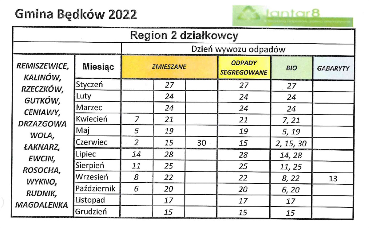 Harmonogram odpadów komunalnych - region 2