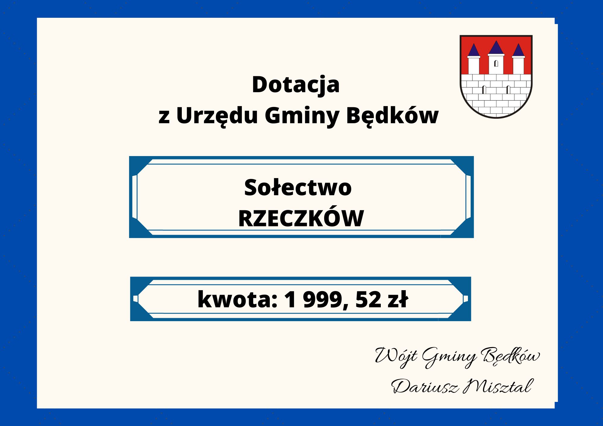 Dotacja z Urzędu Gminy – 1 999,52 zł