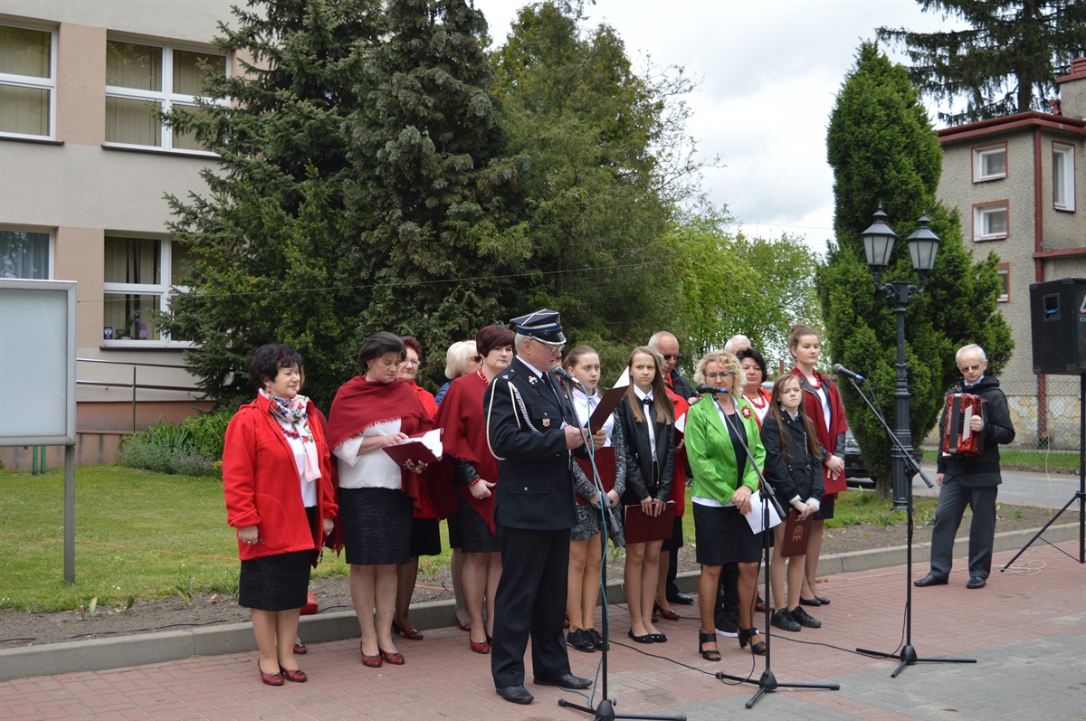 Wójt Gminy Będków Dariusz Misztal dziękuje, za udział pocztów sztandarowych oraz wszystkim druhom strażakom, młodzieży szkolnej, zespołowi ludowemu Fajne Babki oraz przybyłym osobom.